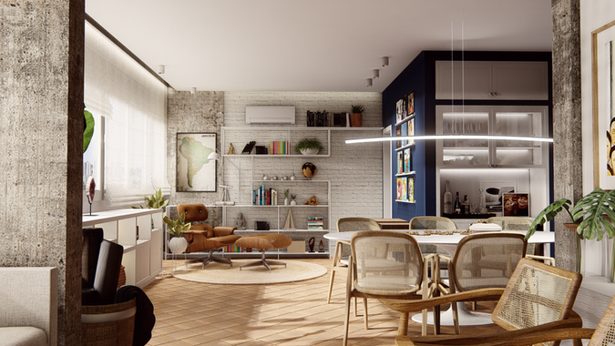 Com toda bossa que o Rio tem, o Apartamento Samba é um projeto para um jovem solteiro que vive no Leblon, viaja o mundo e tem muito bom gosto. Trouxemos para este projeto parte da estrutura em concreto aparente, e painéis de azulejaria que se conecta com o nosso modernismo muito presente no Rio de Janeiro.